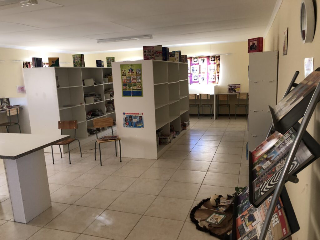 Thanks to the generosity of Africa Foundation supporters, funds were raised to build the kitchen, dining hall, library/media centre and toilets. Additional funding enabled the kitchen and dining hall to be equipped, to be operational, and shelving to be erected in the library. The media centre was also adequately equipped so that it provides access to the internet and ICT activities. This includes computers, for work-stations and one for the librarian, Wi-Fi router, networking hub and printer. Security measures have also been taken, including burglar bars and gate for the library windows and door. A commitment has been made by the Department of Education to cover the software licenses and the ongoing running costs of the internet connection, printing supplies and computer maintenance.
